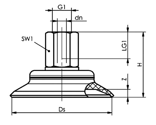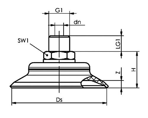 | Codice fornitore | Codice Camozzi | dn ([mm]) | G1 | H ([mm]) | LG1 ([mm]) | Ø Ds ([mm]) | SW1 ([mm]) | Z ([mm]) |