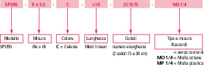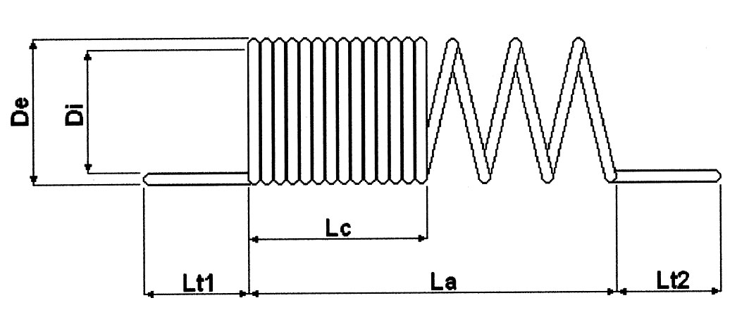| Codice fornitore | De ([mm]) | Di ([mm]) | La ([mm]) | Lc ([mm]) | Lt1-Lt2 ([mm]) | Lunghezza ([m lineari]) | Misura | PE ([bar]) | PS ([bar]) |