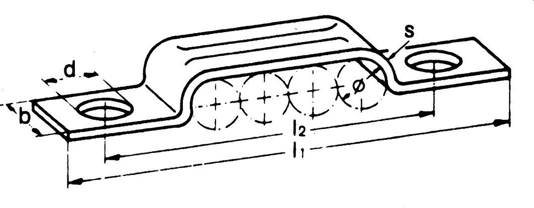 | Codice fornitore | b ([mm]) | d ([mm]) | l1 ([mm]) | l2 ([mm]) | Ø tubo ([mm]) | s ([mm]) |